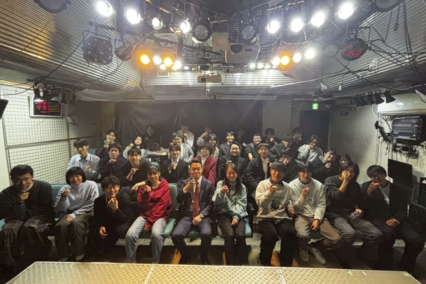 舞台に立ってネタを多くの人に観てもらうという貴重な体験が出来ることです。スタッフであれば、ライブの音響照明、フライヤー作成、小道具制作と様々な分野で活躍することができるのが魅力です。