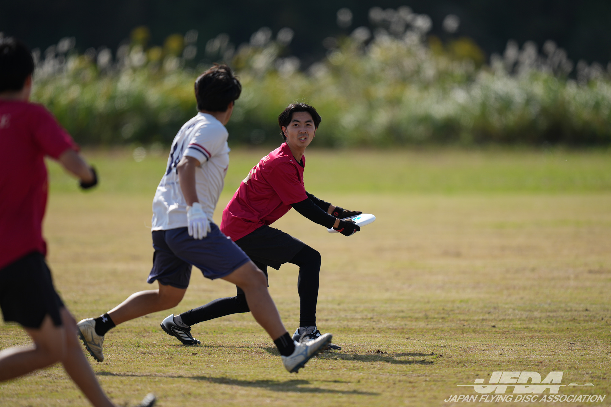 アルティメットはフリスビーをパスしてつないで、フィールドの両端のエリアでキャッチすれば得点になります。「投げる」だけでなく、「飛ぶ」・「走る」といったプレーを含むのもこのスポーツの特徴で、個々が自らの特徴を活かしてプレーすることができます!