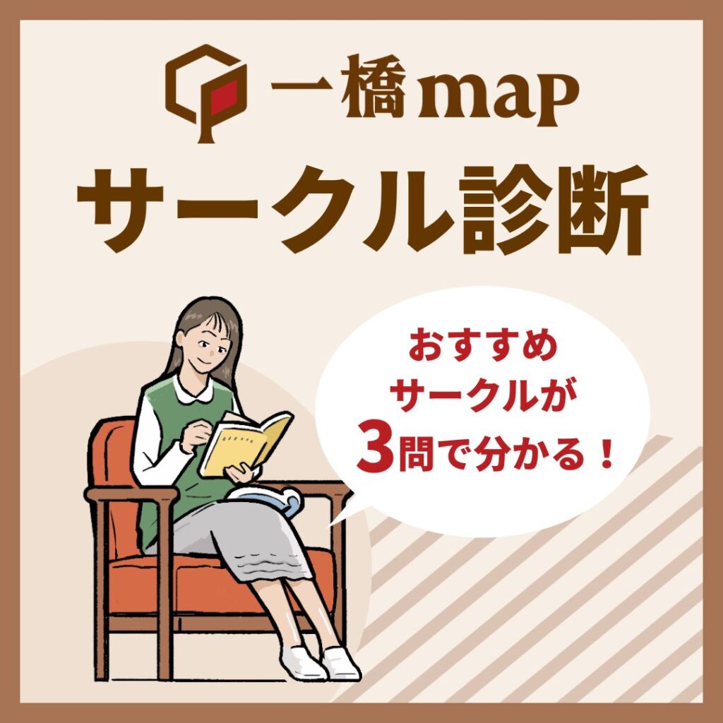 一橋map公式LINEでは、3問答えるだけでおすすめのジャンル&サークルが分かる「サークル診断」を実施しています!