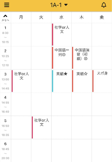 人文科学や社会科学の講義は大教室で行われ、毎年曜限が変わりませんが、その他の必修はクラスが確定して初めてどの曜限に開催されるかがわかります。