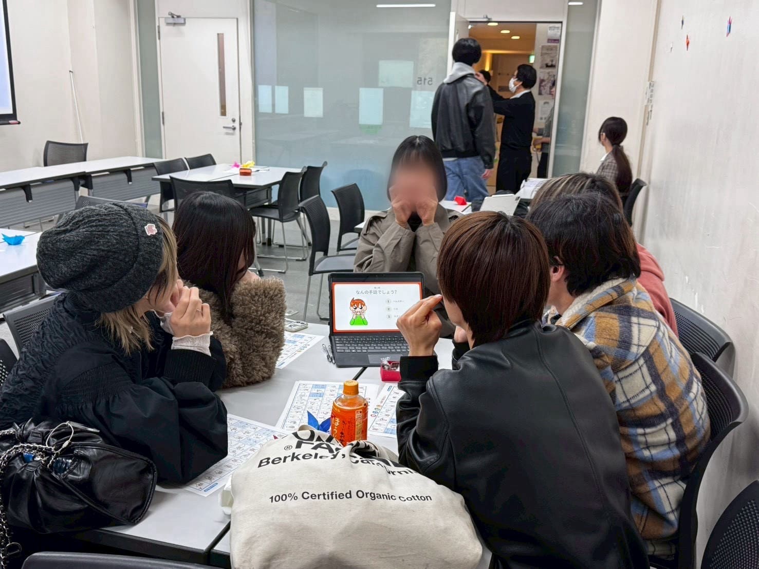 月曜日は手話でのフリートーク、水曜日はテーマごとに単語を勉強し、手話を使った会話の練習を行っています。