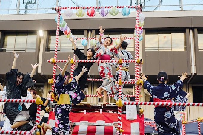 舞台は学内行事だけでなく、浅草の神田明神でダンサーとして櫓台の上で踊ることも可能です!盆踊り楽しそうと思われた方は、是非全学ゼミや体験入部を通して一度踊ってみてください!