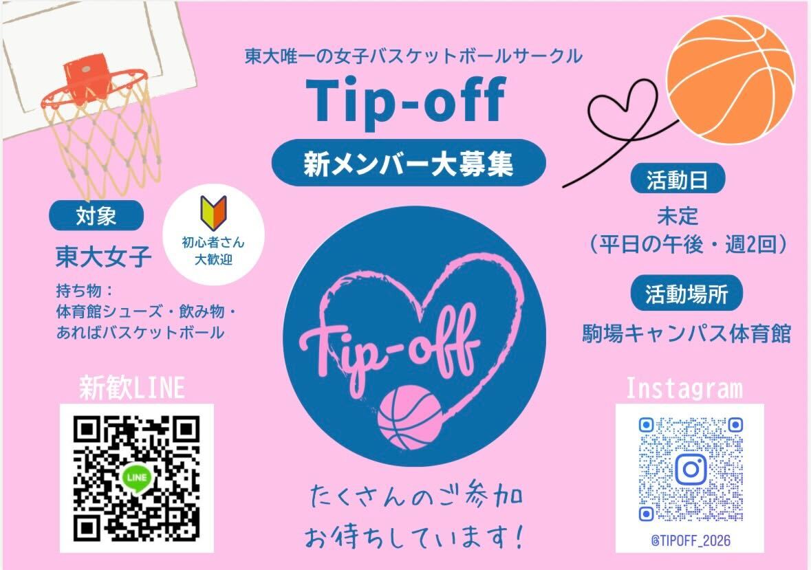 Tip-offは東京大学で唯一の女子バスケサークルで、2026年春から活動を開始します。