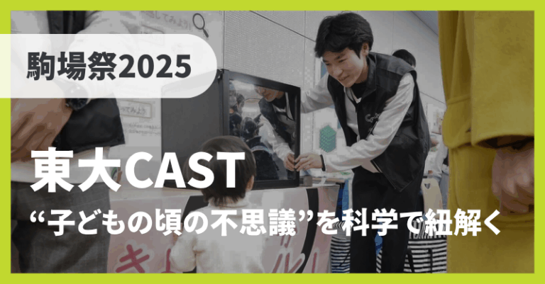 今回は、多彩な企画が並ぶ駒場祭の中でも、毎年ひときわ強い存在感を放つ、東京大学サイエンスコミュニケーションサークルCASTの企画をご紹介します!